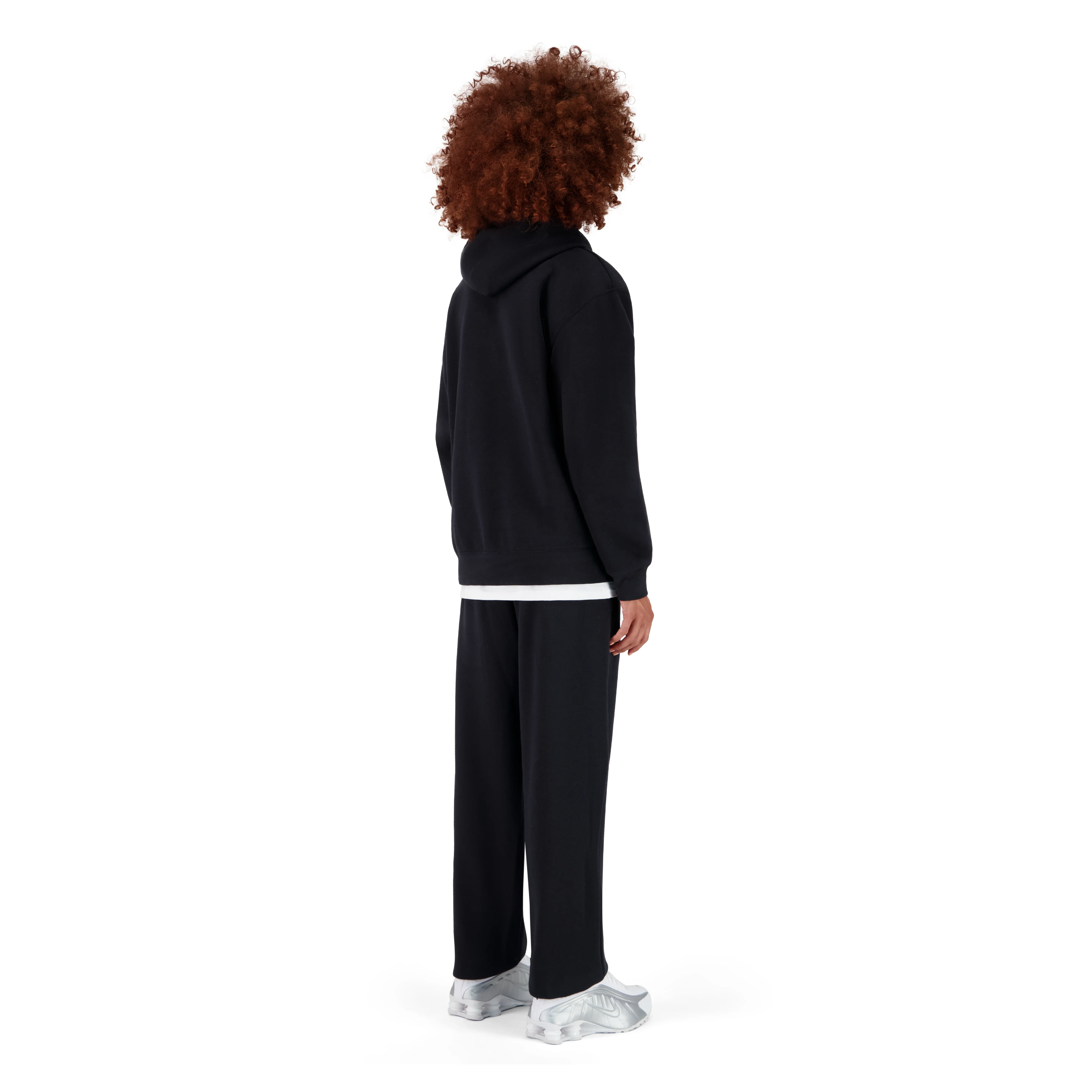 LA MANNEQUIN MESURE 180CM, ELLE PORTE LE HOODIE EN TAILLE M ET LE PANTALON DE JOGGING EN TAILLE L POUR UN EFFET OVERSIZE.